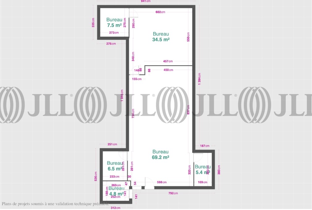 - Surface65 m² (env. 6 postes)