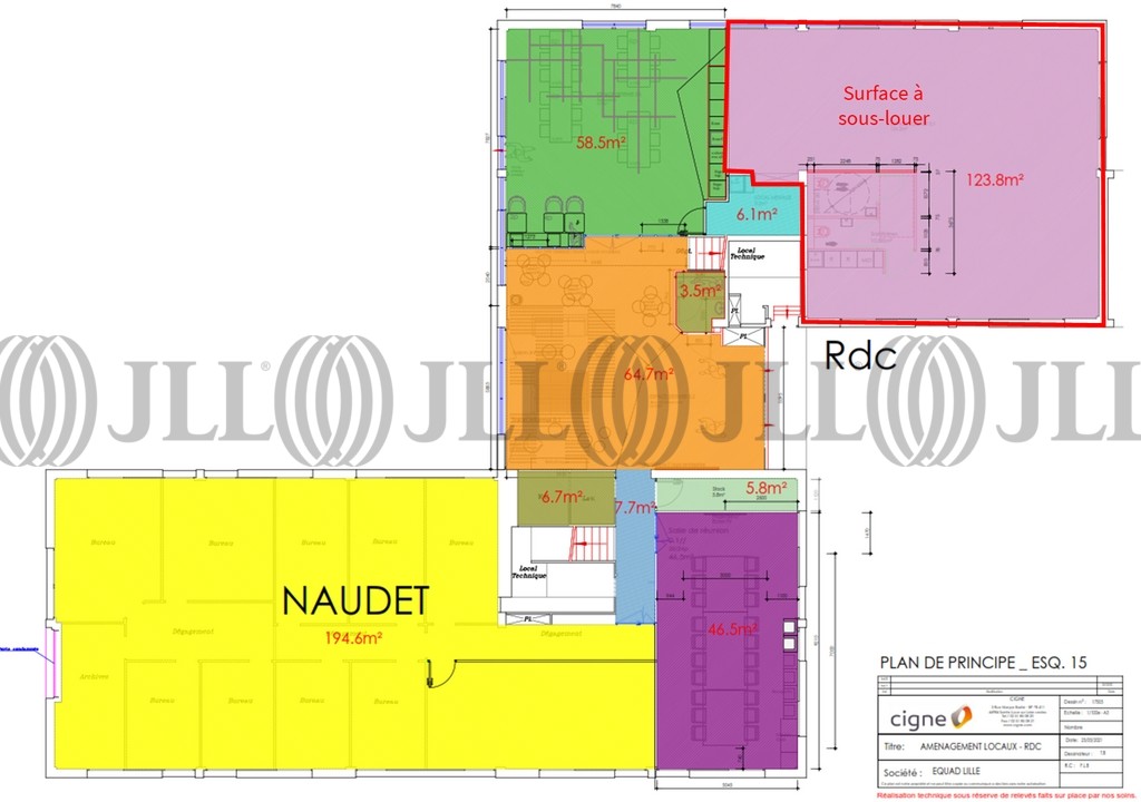 - Surface124 m² (env. 12 postes)