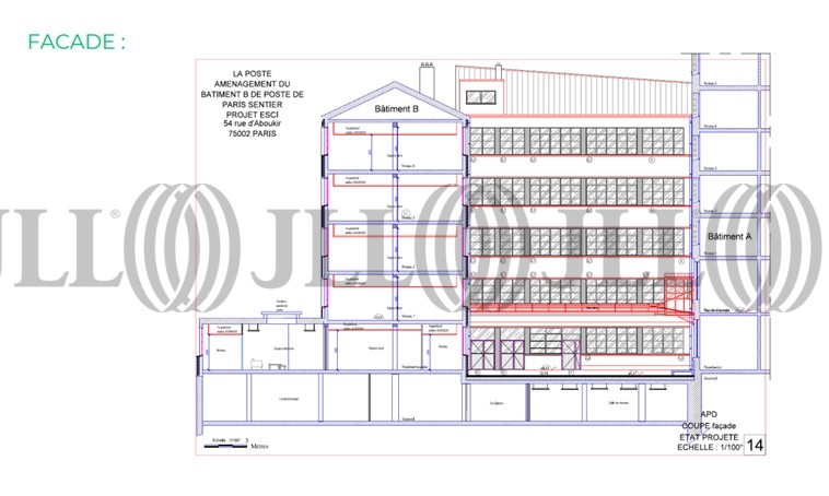 A l’angle de la rue d’Aboukir et de la rue Réaumur, en plein cœur du 2ème arrondissement, JLL vous propose à la location un immeuble de bureaux de 2 050 m² intégrant un espace sous-sol de 700 m², en cours de rénovation. L’immeuble va être entièrement restructuré par le propriétaire (huisseries, façades, aménagement, etc…)