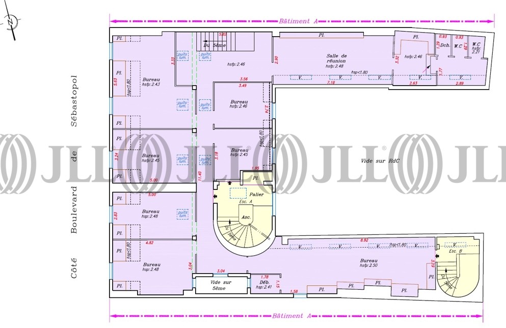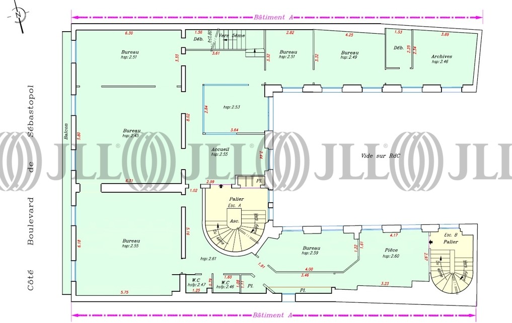En plein cœur du 3e arrondissement, JLL vous propose un duplex de 387 m² à la location. La surface est lumineuse, donnant à la fois sur cour et sur rue et possède un balcon filant au 5e étage. Relié par un escalier intérieur, ce duplex est un mix d’open spaces et de bureaux cloisonnés. Disponibilité en Janvier 2026, après travaux d'installation de la climatisation au 6e étage.