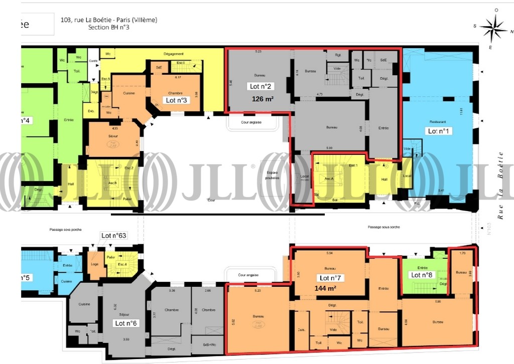 - 144 m² en RDC partiellement rénové avec des moulures, de la moquette. La surface dispose d’une entrée, 5 espaces cloisonnés, une cuisine, deux sanitaires et deux espaces de stockage.