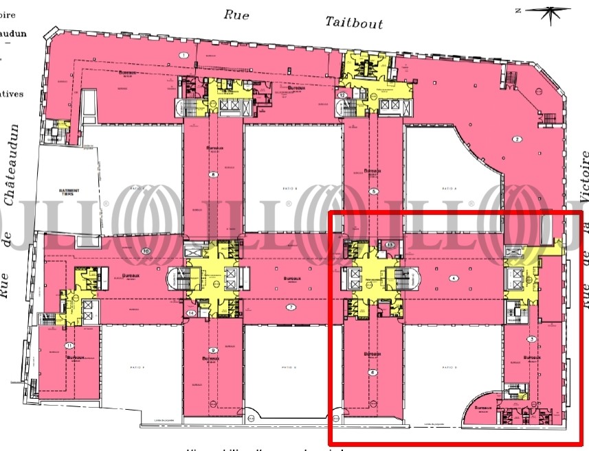 L'immeuble propose des solutions verticales (immeuble indépendant, rue Taitbout de 6 500m²) ou horizontales (des grands plateaux) de 230m² à 4 000m².