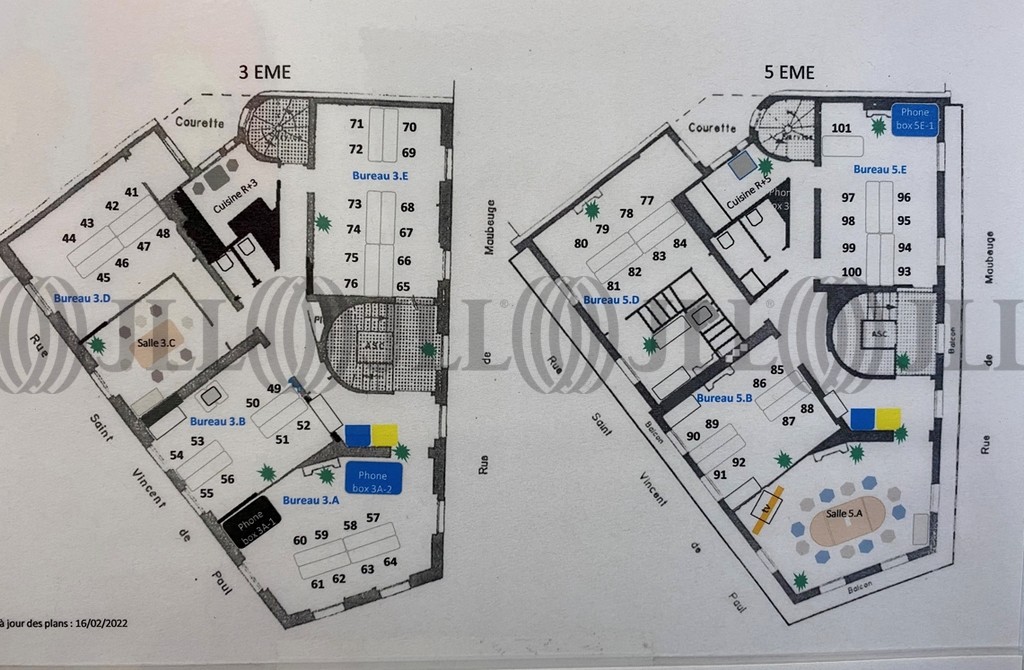 Au total, 100 postes et 13 salles de réunions sont disponibles sur l’ensemble de l'immeuble. Divisible par plateau.
