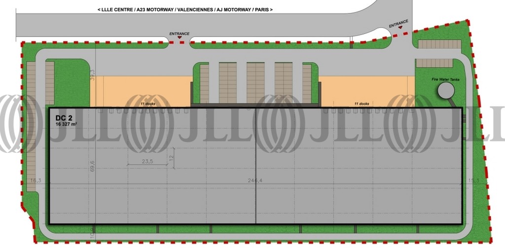 Site clos et sécurisé accessible par gros porteurs, à proximité des axes autoroutiers (A1, A3, A27) et de l'aéroport de Lille-Lesquin.