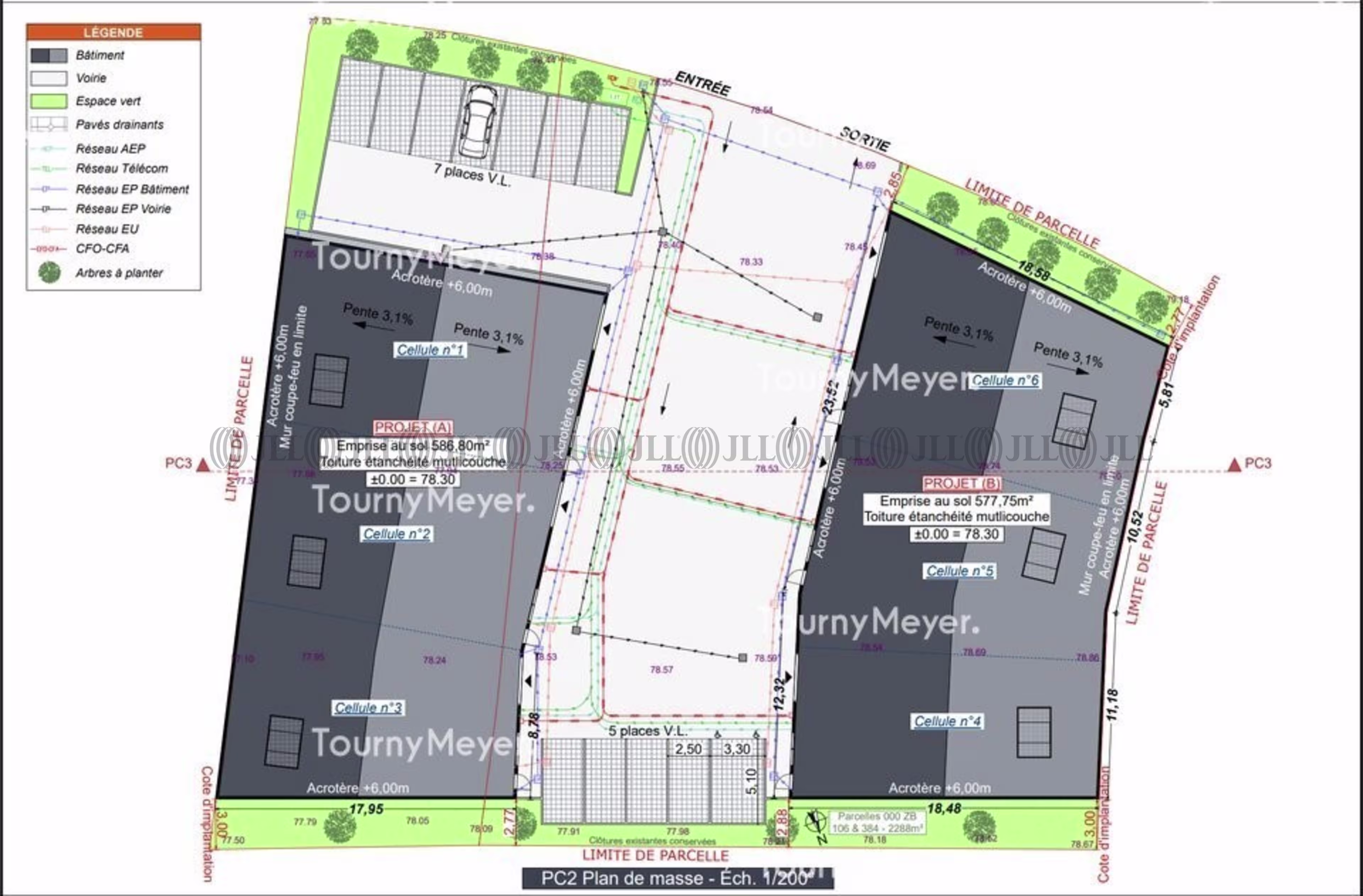 Sur un terrain clos et bitumé, 6 cellules d'activités d'une surface entre 150 et 210m². Possibilité de réunir plusieurs cellules