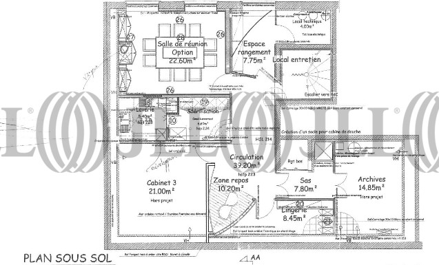 - Surface220 m² (env. 22 postes)